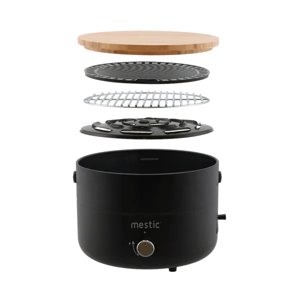 Lokið á grillinu er viðarbretti sem getur einnig nýst sem skurðarbretti.